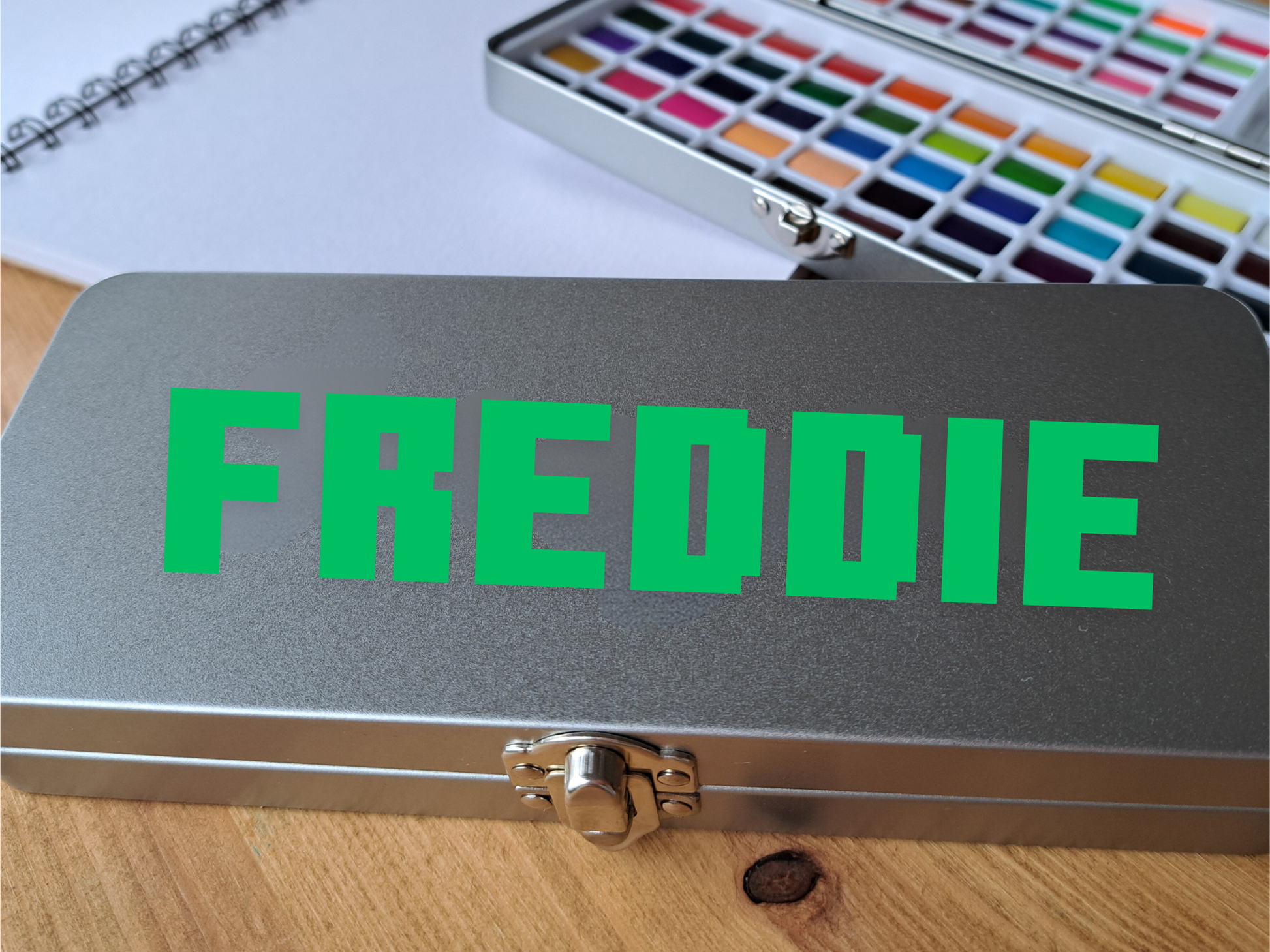 Personalised watercolour paint set with 90 vibrant colours, in attractive tin. Includes refillable watercolour paintbrush! Perfect crafting gift for art lovers and creative kids by The Artful Fox