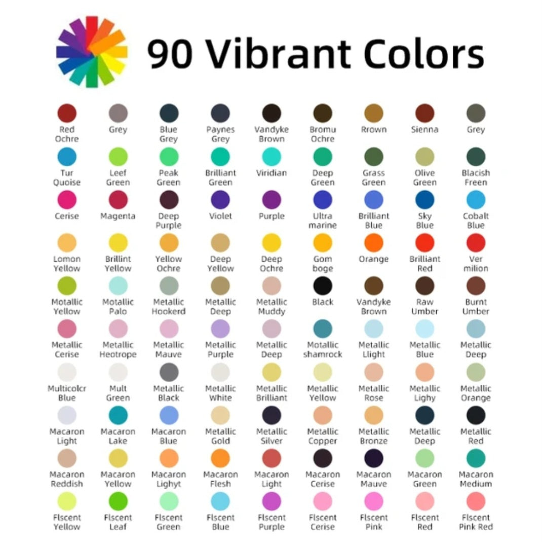 - Vibrant Colours: With 90 colours to choose from, there's no limit to what you can create!